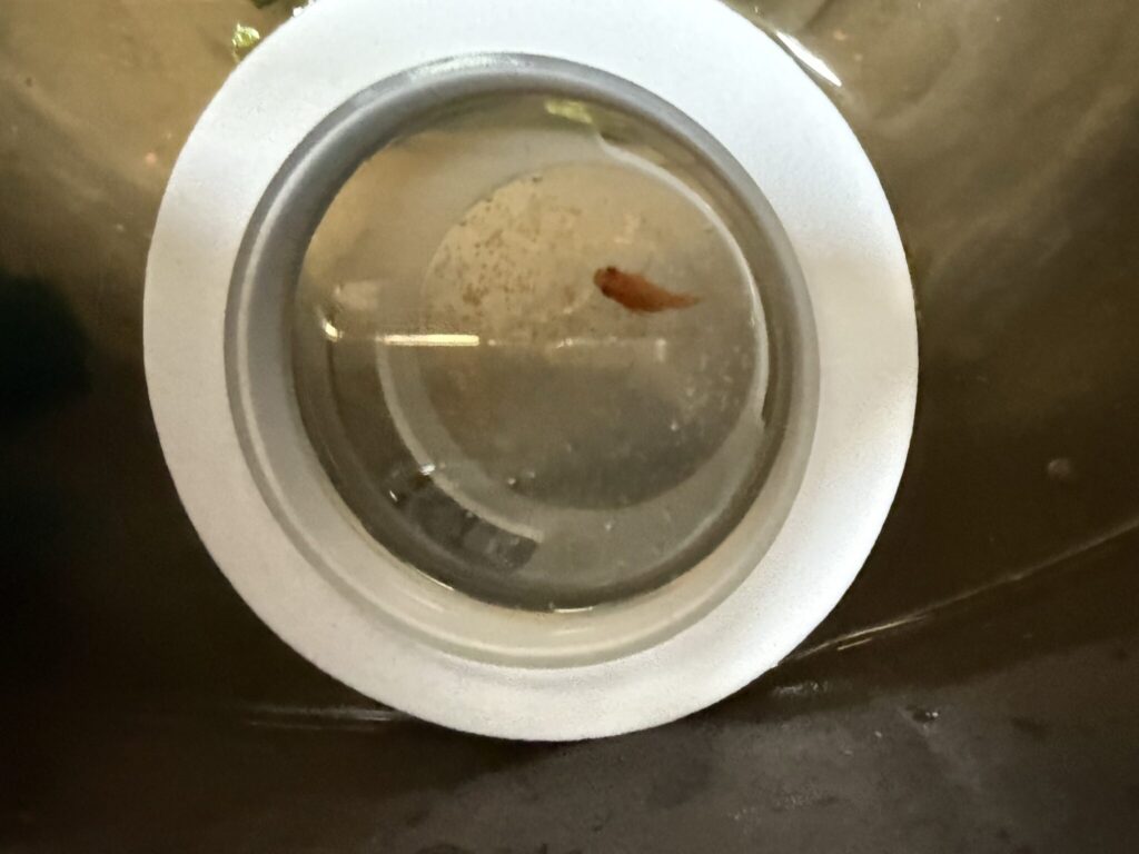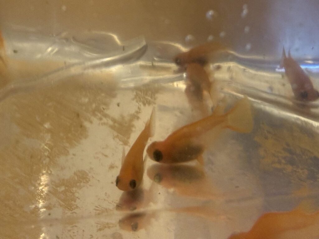 黒いパンダみたいなお目目がキュートなメダカです。
