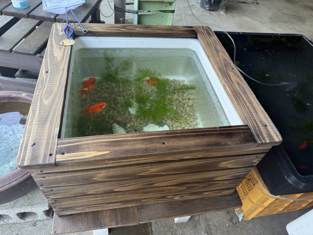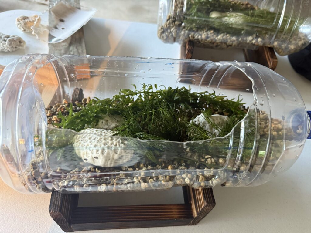 砂利を敷き詰めて、水草を海辺の石でおさえ、