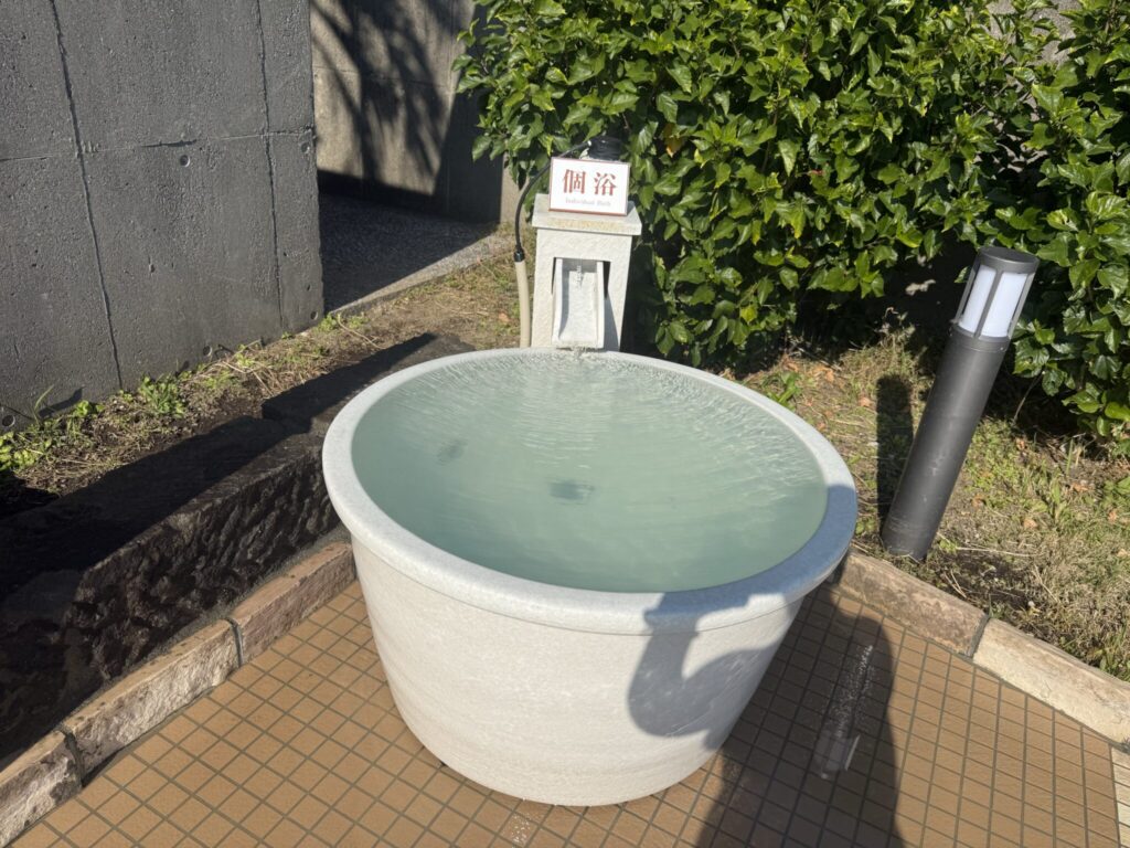 新たな泉源から湧き出す青みがかった乳白色のお湯