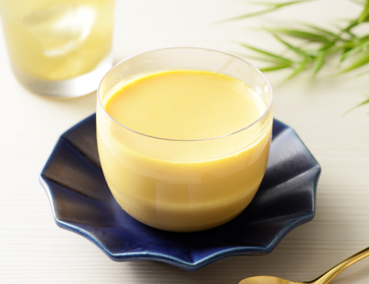 和三盆糖で仕立てたプリンは、上品なキレのよい甘さが特徴です。卵は、富士山麓の深海水で育った赤鶏の「きよらグルメ仕立て卵」の卵黄のみを使用し、素材のよさが引き立つシンプルな仕立てです。